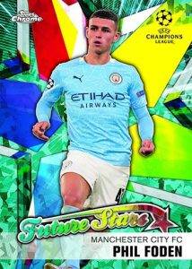 The bulk of the Sapphire checklist simply brings over the base set from 2020-21 Topps Chrome UEFA. This time, though, instead of the silver finish, it’s a blue shard pattern.