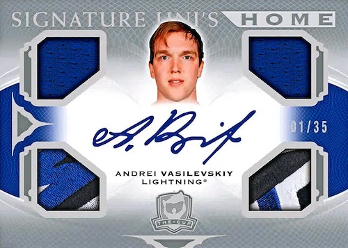 Each Box of The Cup contains One Rookie Auto Patch Card, One Rookie, Veteran, or Legend Patch Card, One Non-Memorabilia Autograph Card, One Non-Auto Insert, Memorabilia, Printing Plate and/or Redemption Card, and One Base Set Card #’d to 249!