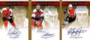 Legends of Hockey Triple-Signed Booklets: Each low-#’d booklet features three legendary players and their hard-signed autograph.