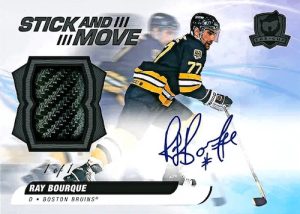 Stick & Move: This incredible new #’d set features game-used stick from current stars and legends of the game. Look for Gold Foil Auto (Varied #’ing) and Black Foil Auto (#’d 1-of-1) parallels, each of which sport hard-signed autographs.