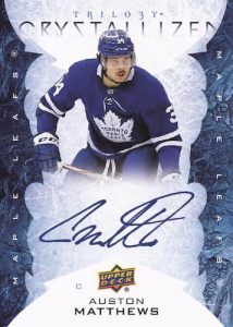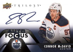 Trilogy also features four amazing hard-signed plexiglass inserts: Auto Focus, Crystallized, Scripted Hall of Fame Plaques (boasting a checklist consisting of five of the greatest players to ever step on the ice) and Auto Focus Rookies (New!).