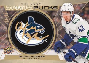 The popular Signature Puck insert sets are back! Every card features a manufactured puck with a hard-signed autograph. In addition to the regular puck cards, look for a variety of themed puck cards featuring rookies, all-stars, trophy winners and Hall of Fame inductees. Look for rare team logo and thematically-aligned (e.g. All-Star Logo) parallels of each set, all #’d to 25 or less!