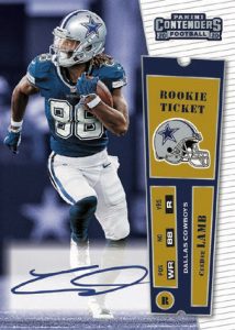 Find inserts that are a staple to Contenders Football with Rookie of the Year Contenders, MVP Contenders, Round Numbers, Winning Ticket and more!