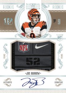 New to 2020 National Treasures, look for Super Bowl Immortality, Prodigy Patch Autographs, Rookie Signatures Field Pass, Signature Treasury and Gridiron Graphs Duals!
