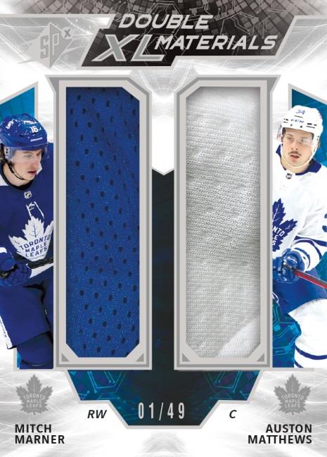 Each card in the Double XL Duos – Materials set, as well as the Premium Materials parallel, pairs two star players and massive game-worn jersey swatches from each.
