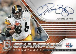 Look for on-card autographs with Champion Signatures, Illustrious Legends, Sky High Signatures, Vested Veterans Autographs, and RetroSpect.