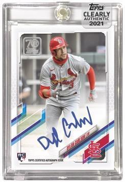 Topps Clearly Authentic Baseball showcases the 2021 Topps base card design, as well as an assortment of all-time classic Topps designs on clear, acetate trading cards.