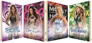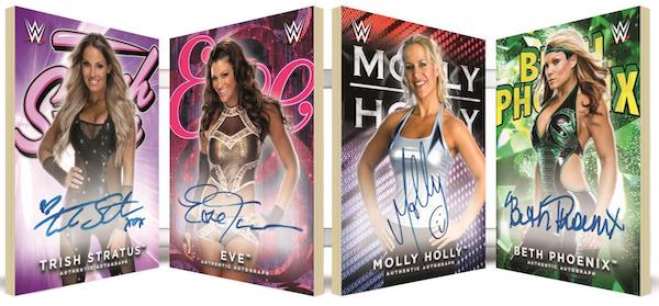 Legends of the Women’s Division Autograph Book Card: Some of the most successful names ever from the Women’s Division signing on one card – Trish Stratus, Eve, Beth Phoenix and Molly Holly!