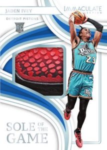Look for tons of unique memorabilia content this year in Immaculate Collection. Along with the incredible Sneaker content, find Logoman cards, Brand Logos, Team Slogans, and more.