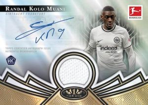 Limited auto-relics join the 2022-23 Topps Tier One Bundesliga party with Autographed Prodigious Patches (50 subjects; #/10) and Autographed Tier One Relics (50 subjects; #/5) cards.