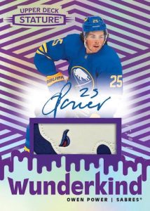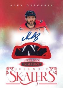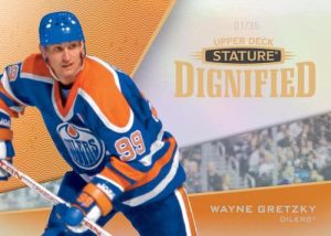 From there, the 2022-23 Upper Deck Stature Hockey starts fresh with three insert debuts. Dignified (25 cards; 1:4 boxes) honors all-time greats, Splendid Skaters (25 cards; 1:4 boxes) identifies some of the top stars on the ice, and Wunderkind (50 cards; 1:2 boxes) highlights the ’22-23 rookies on a “classy new design.”