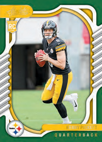 Look for the ultra-popular short-printed Kaboom insert featuring the best and brightest stars of the NFL. Look for Hobby exclusive Green and Gold Parallels!