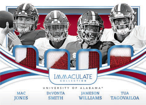 Immaculate Monuments highlights some of the greatest players to play for their schools! Each card features four jersey swatches from some of the best to play the game! Look for parallels with prime jersey swatches!