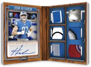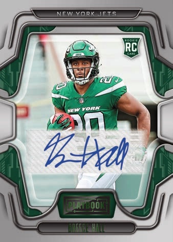 - Look for Rookies Playbook Jersey Autographs with On-Card autographs and numbered to 299 or less.