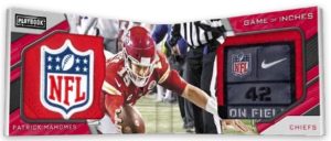 Game of Inches (#/49 or less) opts for impressive images and oversized swatches.