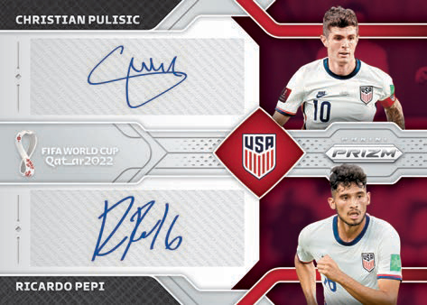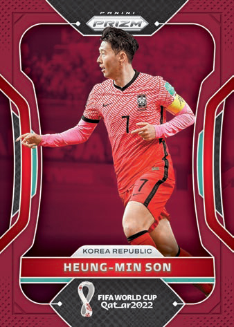 Collect a 300-card base set featuring players from all 32 qualified teams in the tournament. Find 12 Base parallels per box, on average, including the new Prizms Maroon (#’d/22) in honor of the predominant color of FIFA World Cup Qatar 2022™.