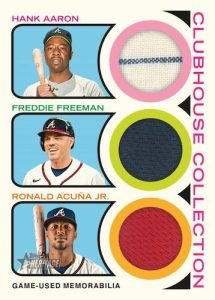 Clubhouse Collection Relics: Game-used uniform and bat pieces from leading MLB stars.