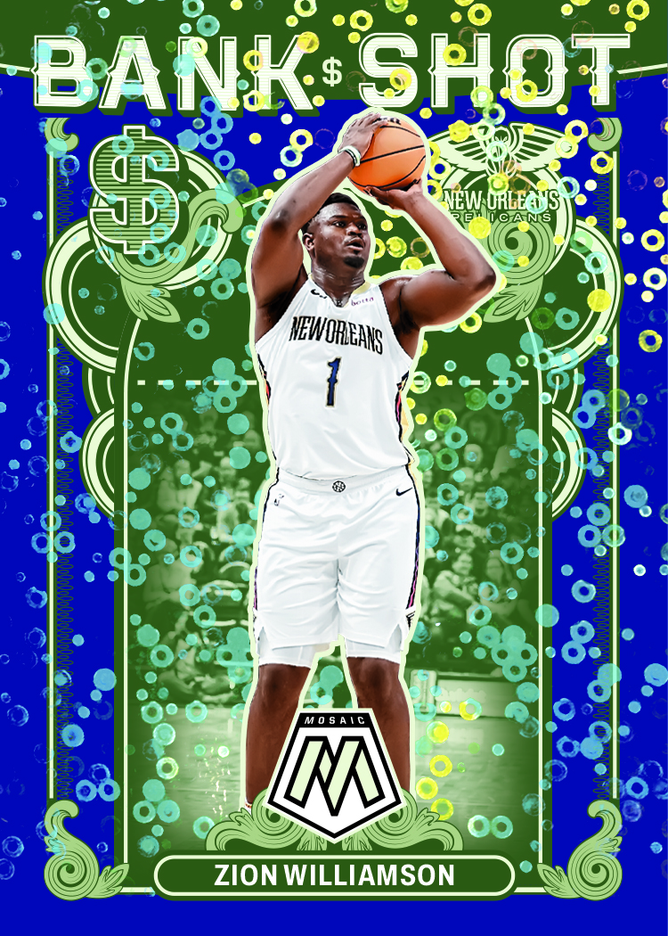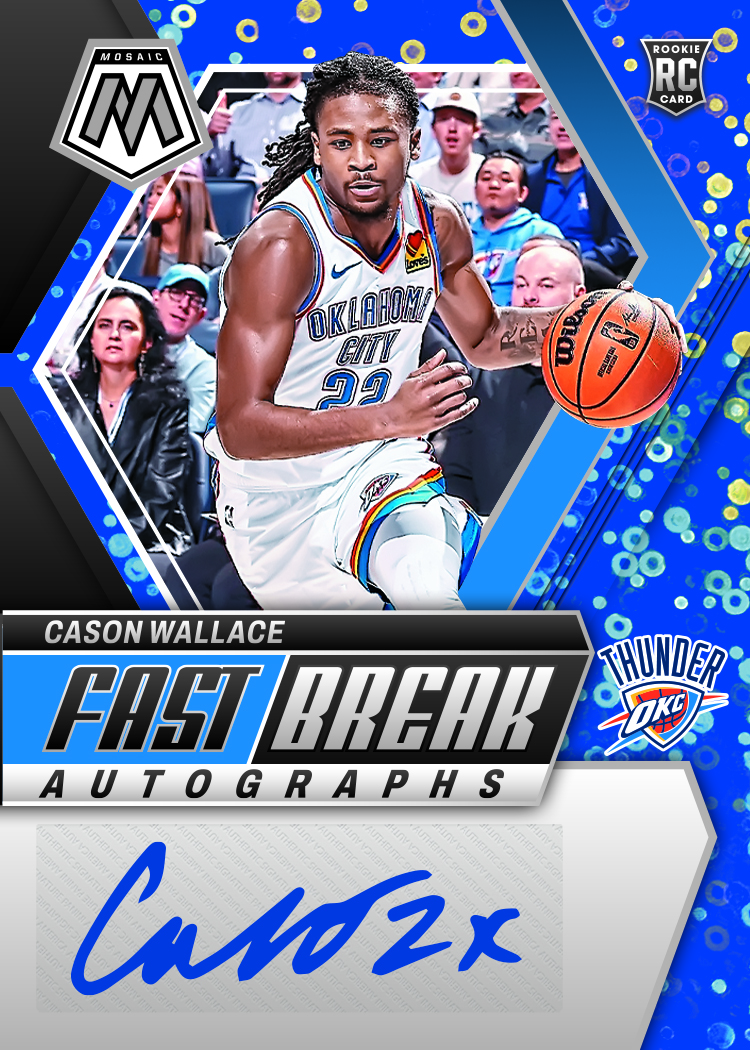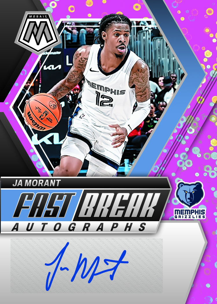 - Collectors can chase after a wide range of Fast Break-Exclusive Base parallels including Mosaic Fast Break Silver, Blue (#’d/85), Purple (#’d/50), Pink (#’d/20), Gold (#’d/10), and the One-of-One Mosaic Fast Break Black!
