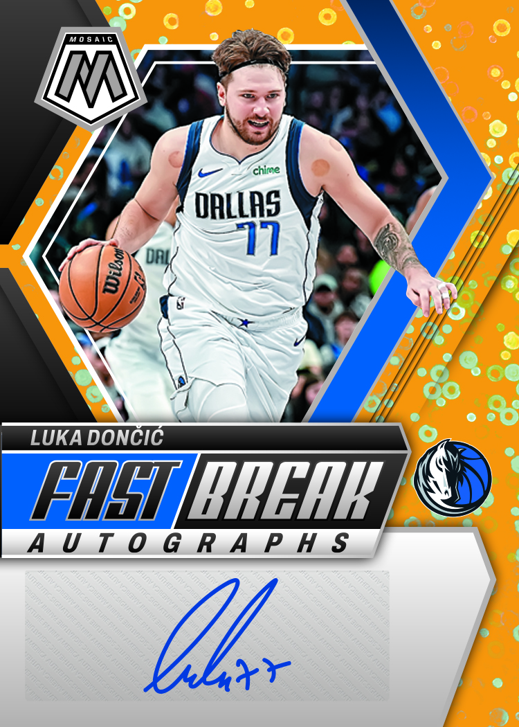- Mosaic returns with a collection of its popular parallels, autographs, and inserts! Find 1 Autograph, 11 Prizms, 5 inserts, and 1 Rookie Variation in each Fast Break Box, on average!