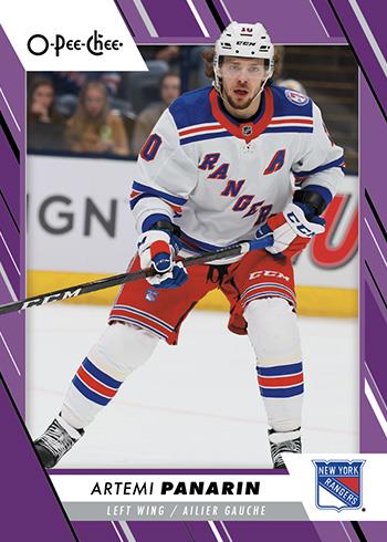 Offering 600 cards in total, the main set for 2023-24 O-Pee-Chee Hockey features 500 base cards and 100 All-Star / Marquee Rookie High Series short prints (SP), which average one per pack. The Purple Border (#/49) parallel is a new addition to Hobby boxes.