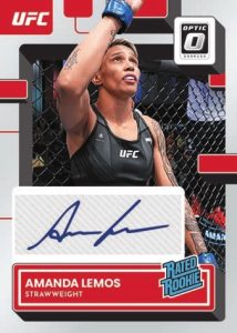 Lastly, the 2023 Donruss Optic UFC hits consist of a few signed sets. Look for young stars in the Base Rated Rookie Signature line.