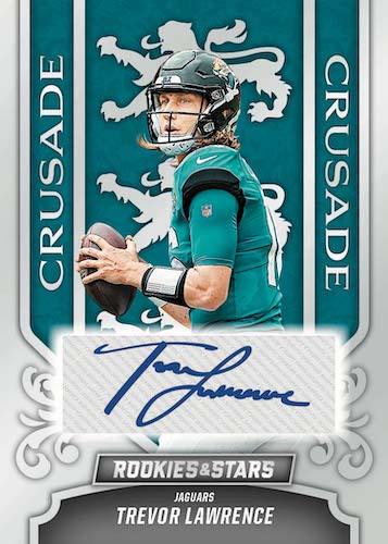 The iconic Crusade insert returns to entice collectors with Signature versions as well as Silver, Pandora, White, Red, Pink, Blue, Purple, Orange, Gold, Green and Black parallels numbered to as low as 1.