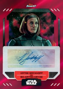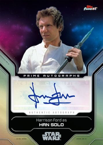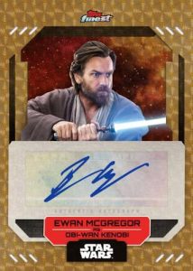 Signed cards arrive in Finest Autographs (1:15 packs), Prime Autographs (#/10) and Tales of the Jedi Autographs (#/99).
