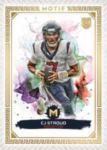 Introducing a brand new program for the Topps catalog, 2023 Topps Motif Football features a high-class art style theme across all designs in the product. Each box is loaded with 6 on-card autographs from top rookie quarterbacks and football legends!
