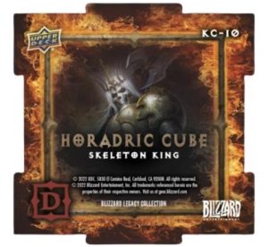 In addition, 2023 Upper Deck Blizzard Legacy Collection caters to specific fanbases via a mix of franchise inserts. Diablo fans can create their own Horadric cube with Horadric Cube square die-cut cards, which come in a Stone Curse parallel.