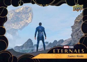 2023 Upper Deck Eternals leads off with a 100-card base set that contains 25 character cards. Key moments from the film are also displayed in the cardboard series.