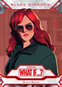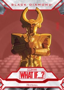 With the inserts, 2023 Upper Deck Marvel What If…? further explores other card brands. The Black Diamond set contains limited base cards (3 per case) and Red parallels.