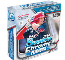 Look for (4) 2024 Bowman Baseball packs and (2) exclusive Mega Chrome packs per Mega Box!