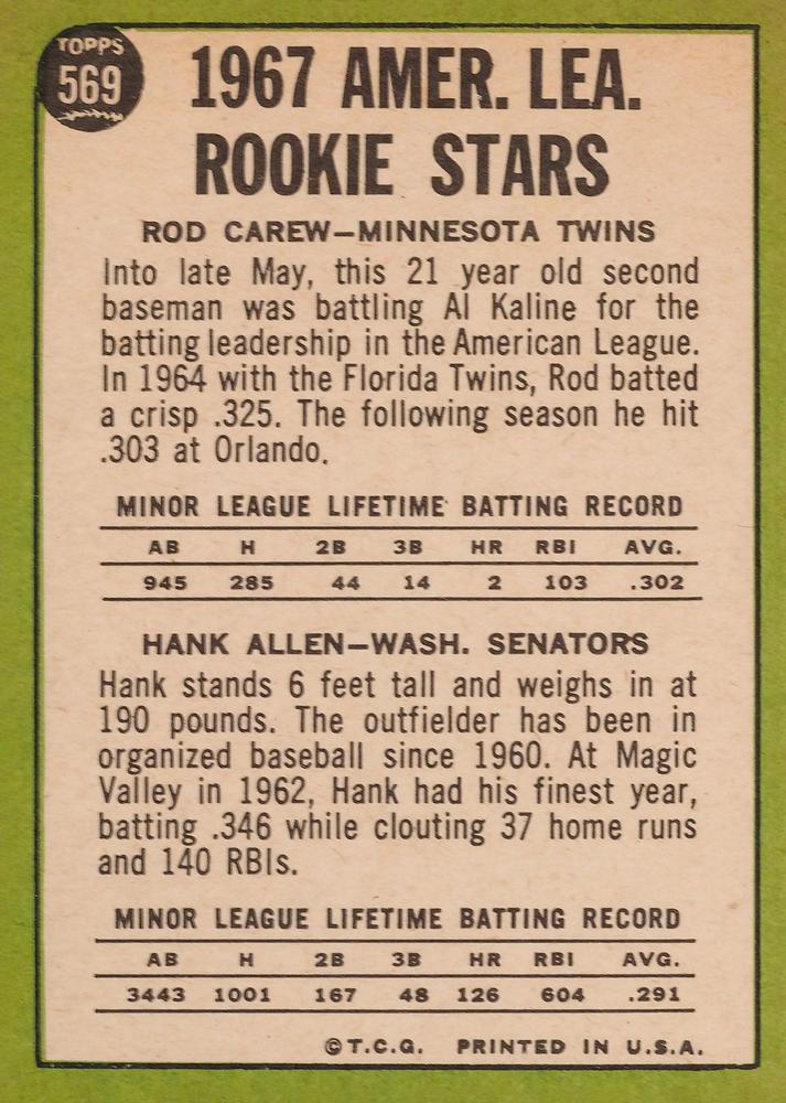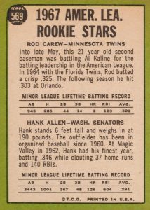- Featuring Hall of Fame rookie cards for Tom Seaver and Rod Carew, 1967 Topps Baseball combines large player images and a minimal design to create an appealing vintage release.
