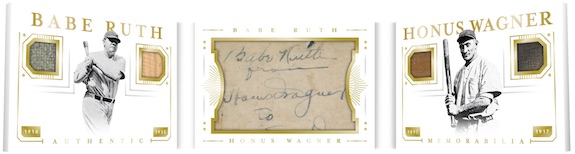 Following up last year’s incredible Babe Ruth/Lou Gehrig Cut Signature Booklet, Panini has added two new pairings for booklets in 2019: Babe Ruth/Honus Wagner and Babe Ruth/ Ty Cobb!