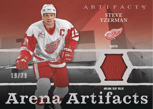 • Each card in this special set #’d to 79 features a legendary Red Wings player (who played in The Joe) alongside a piece of a seat relic from the vaunted arena.