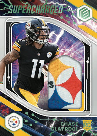 SUPERCHARGED NEON: Look for memorabilia cards 1 per box from stunning set like Supercharged, which feature some of the best rookies poised to take the NFL by storm!