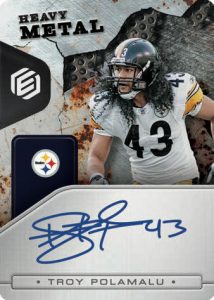 HEAVY METAL: Chase some of the greatest defensive players in NFL history with Heavy Metal, an oncard autographed insert printed on metal!