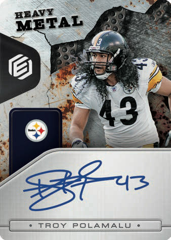 Hunt for on-card autographs from veterans and retired NFL stars in Mettle Moments, Heavy Metal and Steel Signatures.