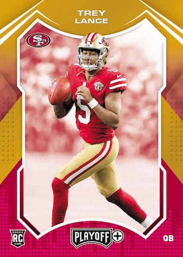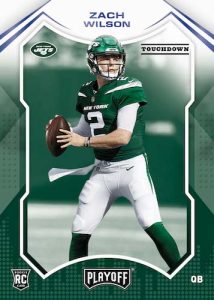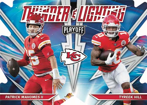 – New to 2021 Playoff Football, look for Die-Cut parallels of Thunder & Lightning, Rookie Wave and Behind the Numbers. Also find Base/Rookie No Huddle parallels #’d/10!
