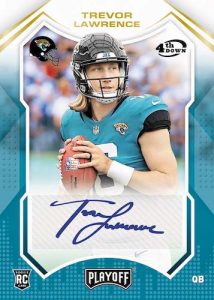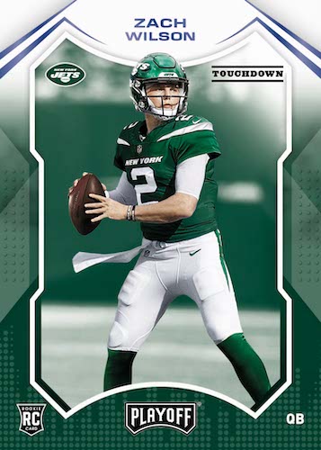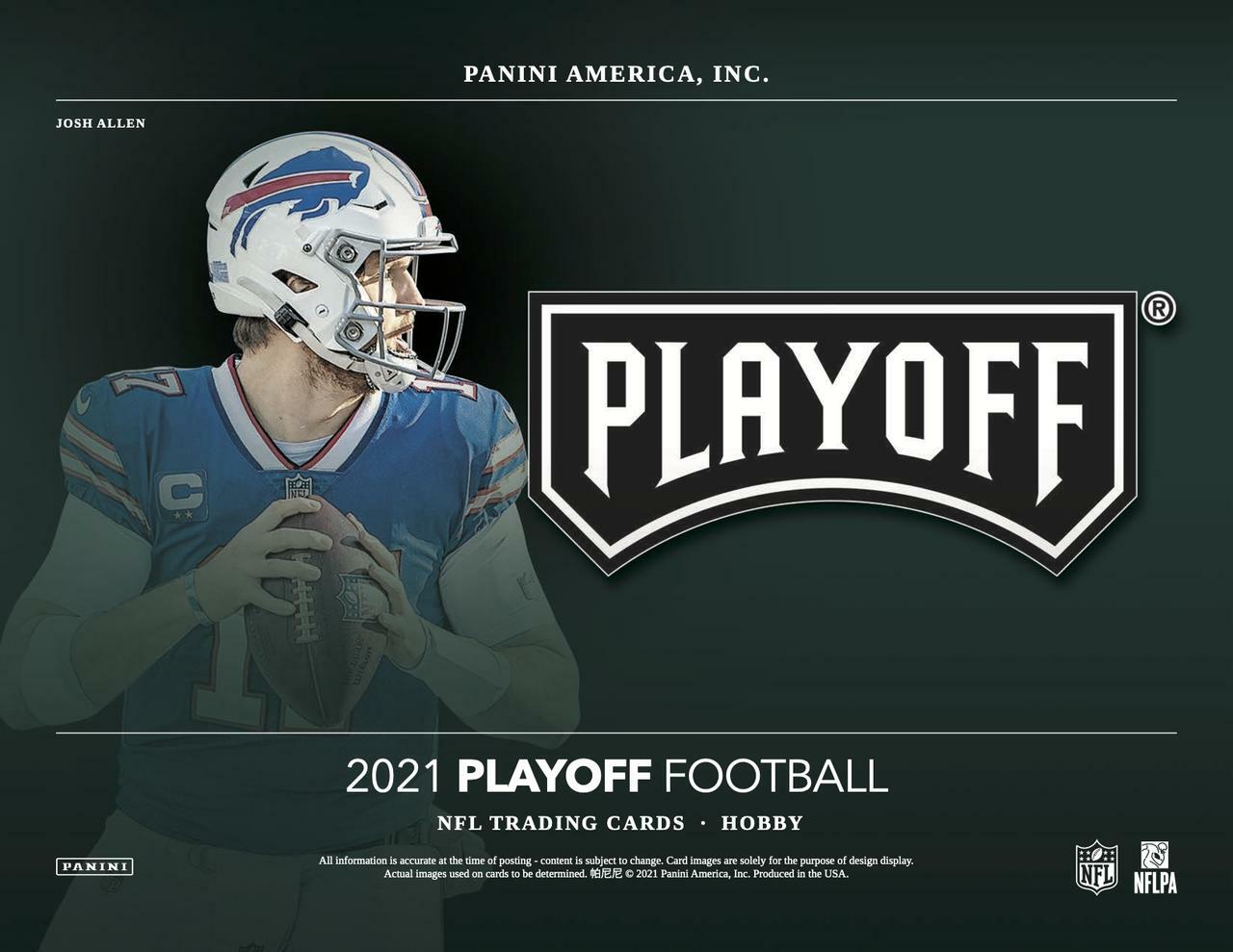 – Playoff Football is action packed for 2021! Look for 2 autographs and 2 memorabilia cards, 12 Rookies, 12 Inserts, 4 Parallels and 1 Base/Rookie Plus per box, on average!