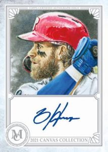 CANVAS COLLECTION ORIGINALS PLAYER AUTOGRAPHS: Hand-drawn art of players on cards alongside the player autograph. Numbered 1 of 1.
