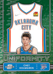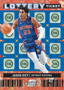 UNIFORMITY GREEN PULSAR, Chet Holmgren SUPERSTARS BLUE CRACKED ICE, Stephen Curry LOTTERY TICKET RED CRACKED ICE, Jaden Ivey