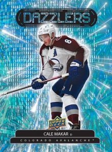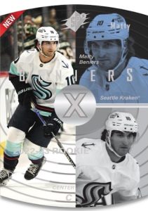 1997-98 SPx gives a nod to the die-cut NBA design with Sky Blue versions for the veterans and rookies. Another throwback option is 1999 History Class, issued for top veterans and rookies as well. The insert selection for 2022-23 Upper Deck Extended Series Hockey continues with another ’90s-inspired set: Black Diamond Dominance.