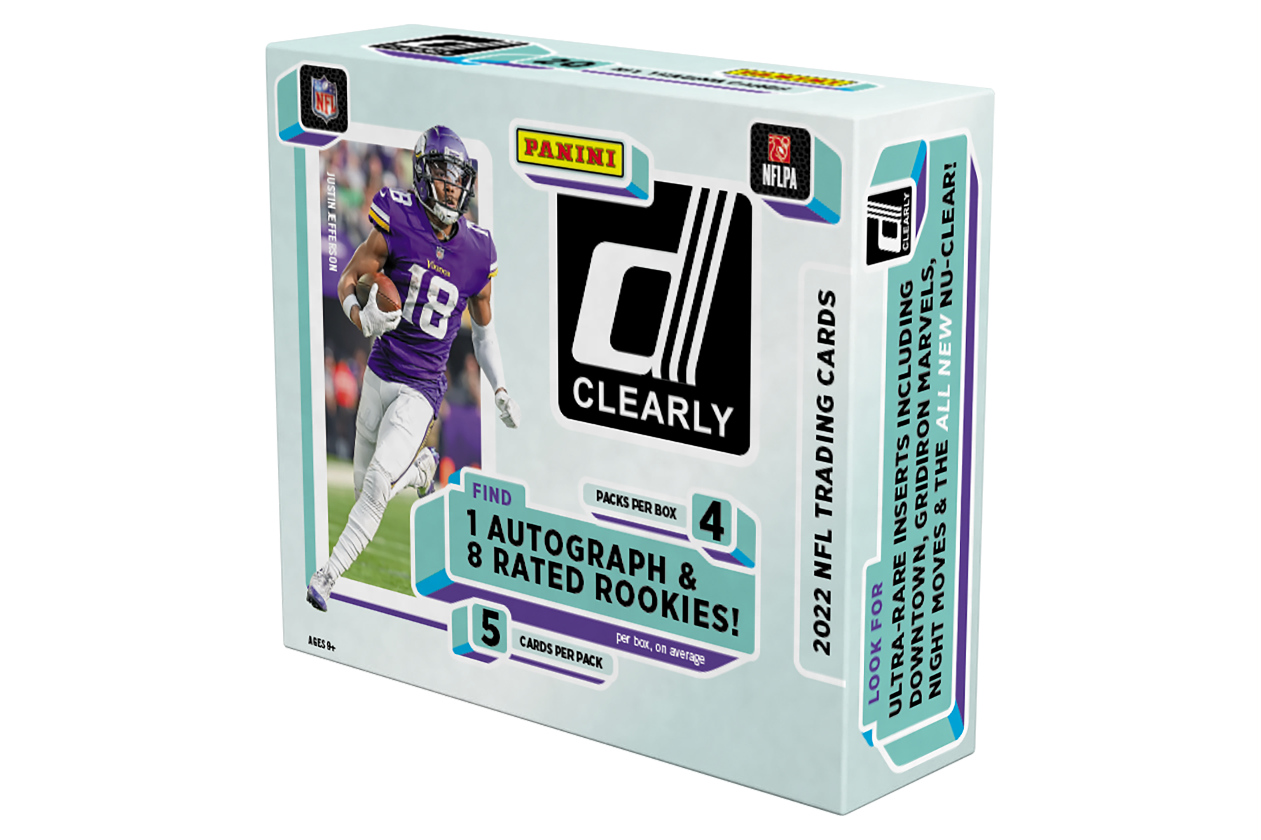 Chase a 50-card all-acetate base set, which features the brightest stars from today’s NFL landscape. Hunt down a 50-card Rated Rookie checklist, which is loaded with the top talent from this year’s deep draft class. Look for the iconic Rated Rookie card design printed on acetate with a bold autograph in Clearly Rated Rookie Autographs.