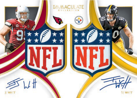 Returning in 2022 Immaculate Collection- Chase the 1/1 Dual NFL Shield Signatures, featuring On-Card Autographs of iconic pairs of NFL stars!