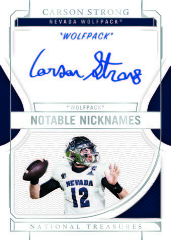 Find patch autographs of the newest draft class with sets such as College Materials Signatures, College Silhouette Signatures, and Team Slogan Signatures Die Cut. Each card features an on-card autograph and a piece of memorabilia.