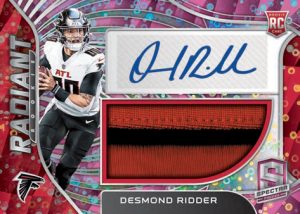 Look for the mesmerizing Radiant Rookie Patch Signatures featuring memorabilia and autographs from some of the top Rookies in the 2022 Rookie Class!