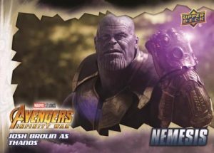 Standard inserts fill out the release at a rate of five per box. This includes Character Posters and Movie Posters (20 cards). Nemesis identifies some of the notable adversaries from the MCU. Another choice is the Infinity Stone line with serial-numbered cards showcasing specific stones and characters.