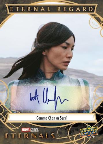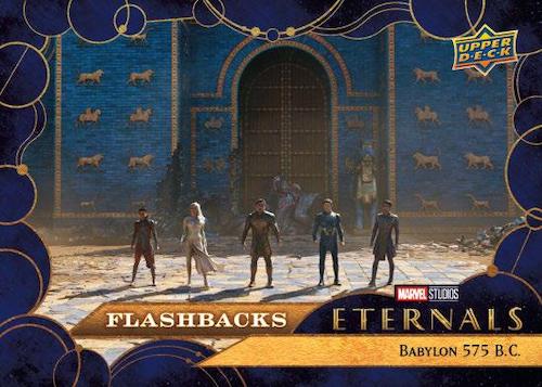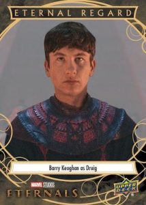 2023 Upper Deck Eternals leads off with a 100-card base set that contains 25 character cards. Key moments from the film are also displayed in the cardboard series.