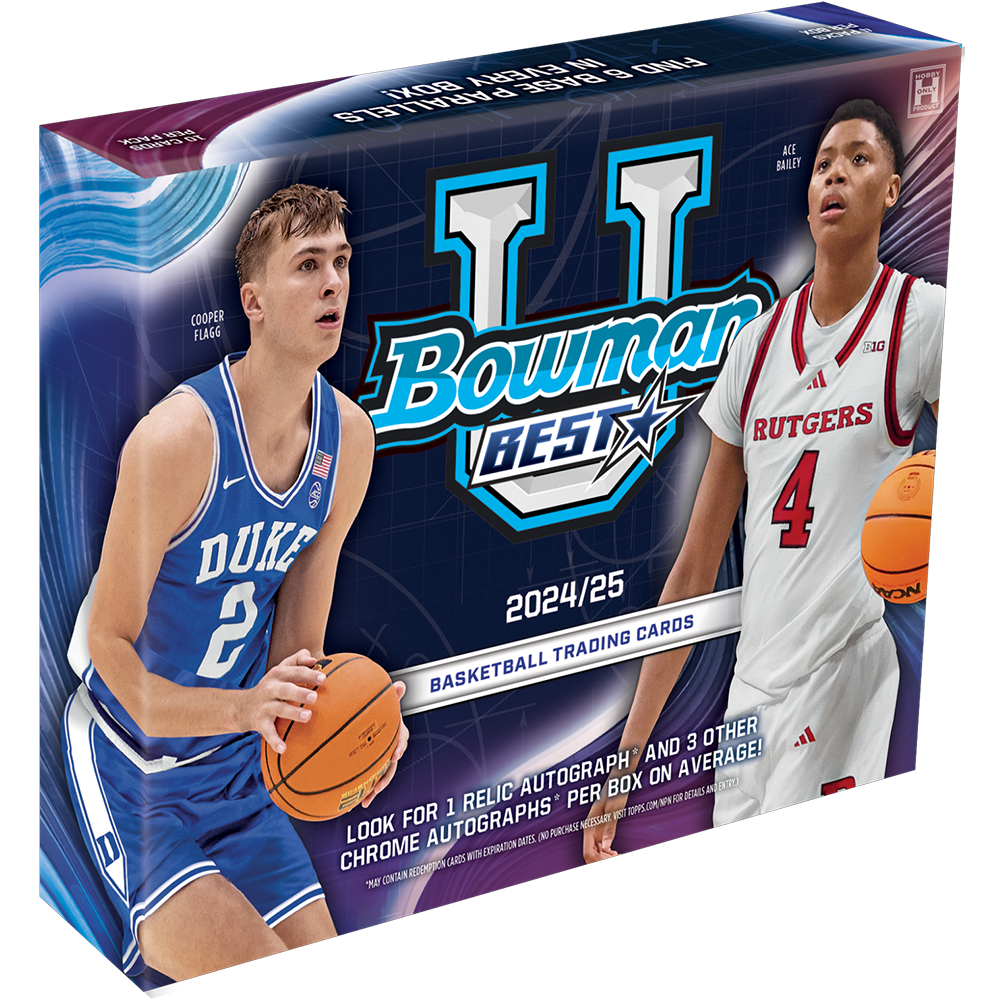 2024-25 Bowman University Best Basketball Hobby delivers 4 autographs per box (including 1 patch auto), 8 inserts, exclusive parallels, and case-hit SSP inserts. Loaded with college basketball rookies, stars, and deep checklist strength. Chase case hits, low-numbered parallels, and unique memorabilia autos!